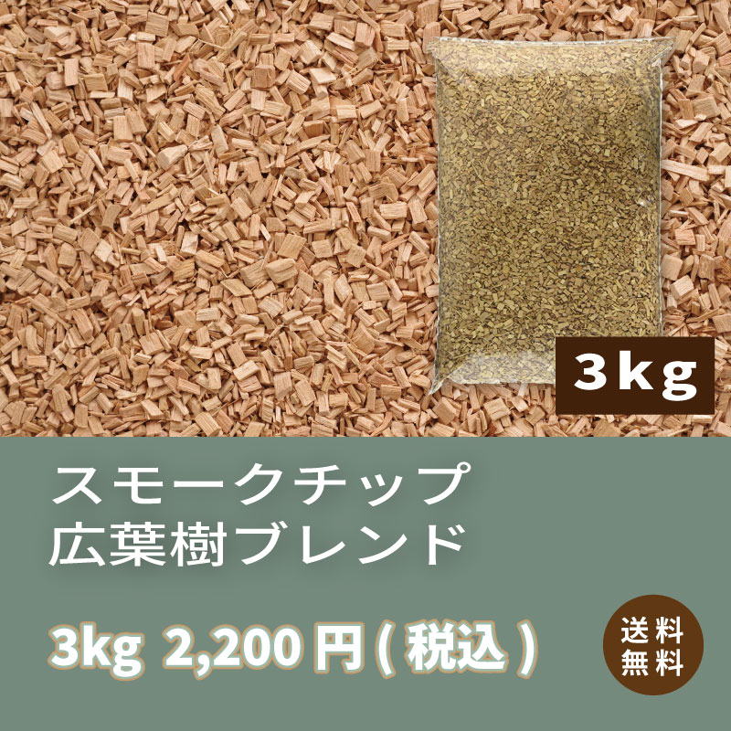 広葉樹ブレンドの特徴は、あまり香りにクセのない仕上がりになるので、はじめてお使いの方にもおすすめのスモークチップとなります。